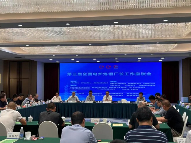 9月11日下午第三屆全國電爐煉鋼廠長工作座談會召開,由中國金屬學(xué)會副理事長兼秘書長王新江和江蘇沙鋼鋼鐵有限公司副總經(jīng)理蔡振明,四川冶控集團(tuán)副董事長劉義騰,江蘇省金屬學(xué)會常務(wù)副理事長兼秘書長、江蘇省冶金行業(yè)協(xié)會會長陳建華主持電爐廠長全體討論會。