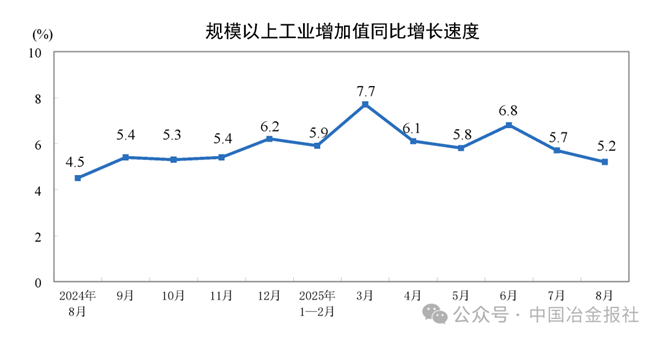 分三大門類看,8月份,采礦業增加值同比增長5.1%,制造業增長5.7%,電力、熱力、燃氣及水生產和供應業增長2.4%。