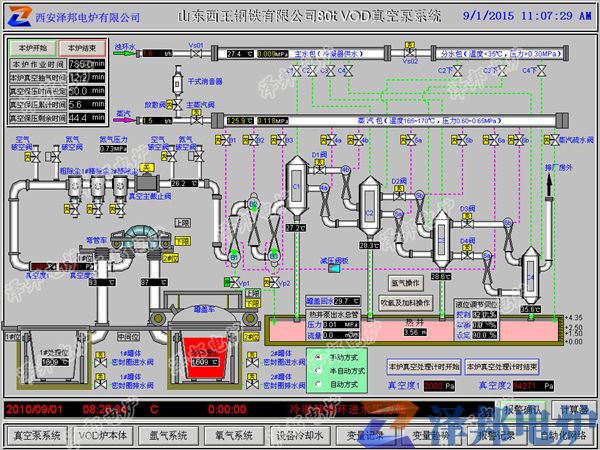 真空系統(tǒng)從大氣壓降至67Pa的時間 | ≤7min(帶鋼水,壓力指罐內(nèi)) |